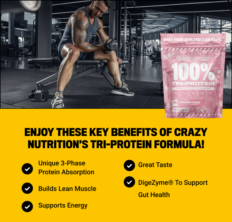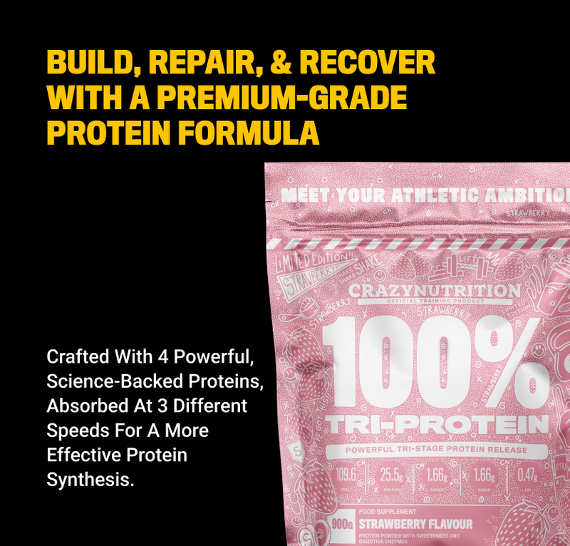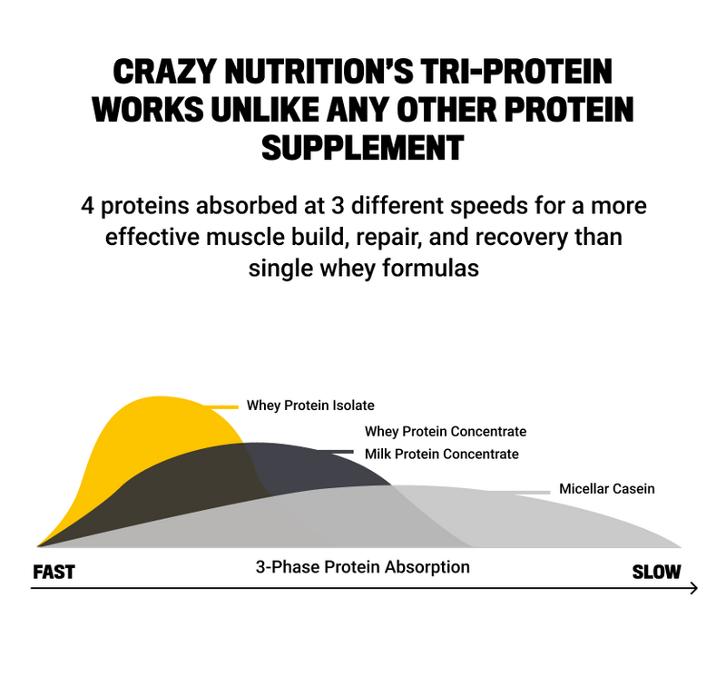 “I’ve tried my fair share of protein supplements. If you can’t get all of your protein from your diet, then it’s ideal to supplement with the best— and TRI-PROTEIN from Crazy Nutrition wins hands down.