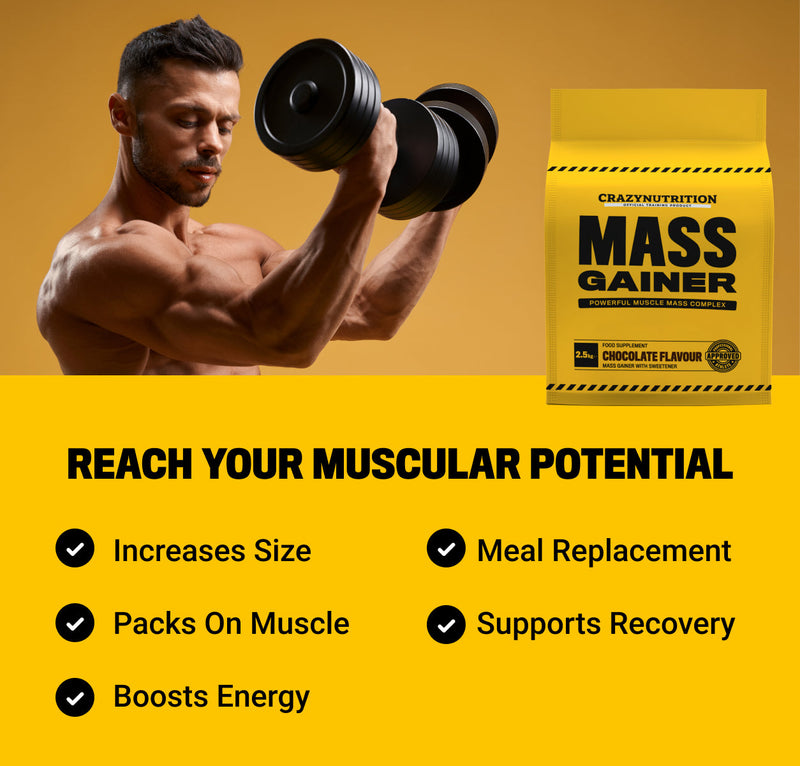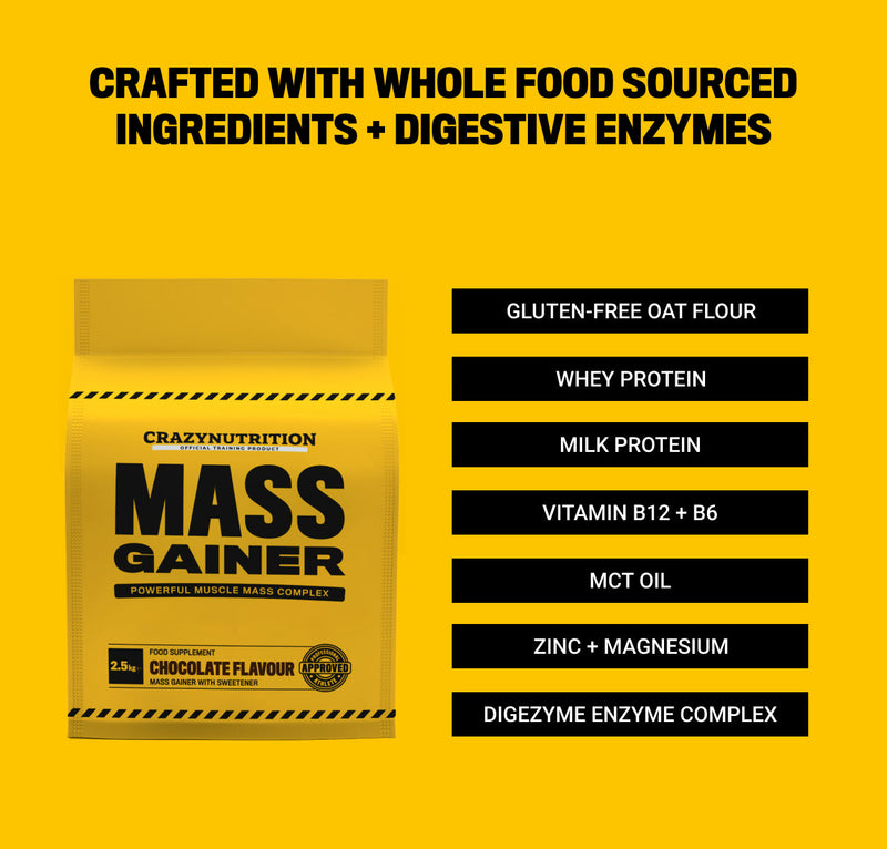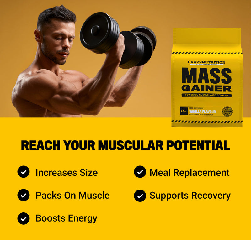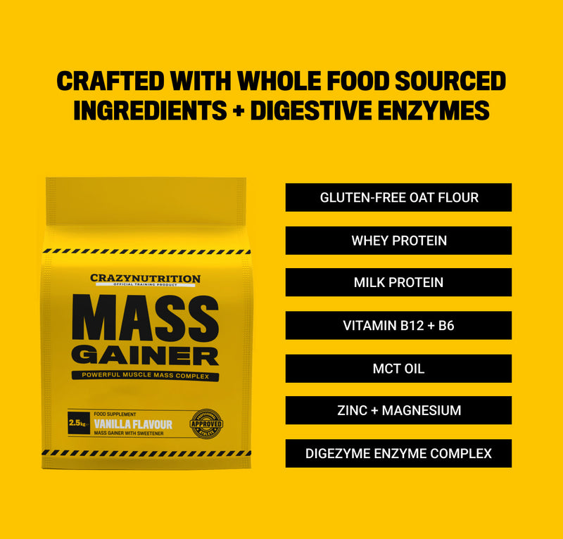 Crazy Nutrition’s MASS GAINER is crafted to be taken on a daily basis, either before or after a workout, between meals, or even as a complete meal replacement.