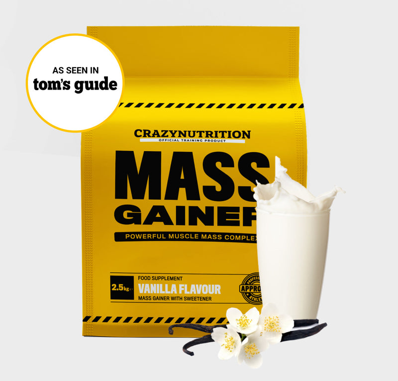 Crazy Nutrition’s MASS GAINER is packed with 488 calories, 40 grams of protein, and 56 grams of clean carbs to help pack on gains fast without causing erratic blood sugar spikes, gas, or bloating.