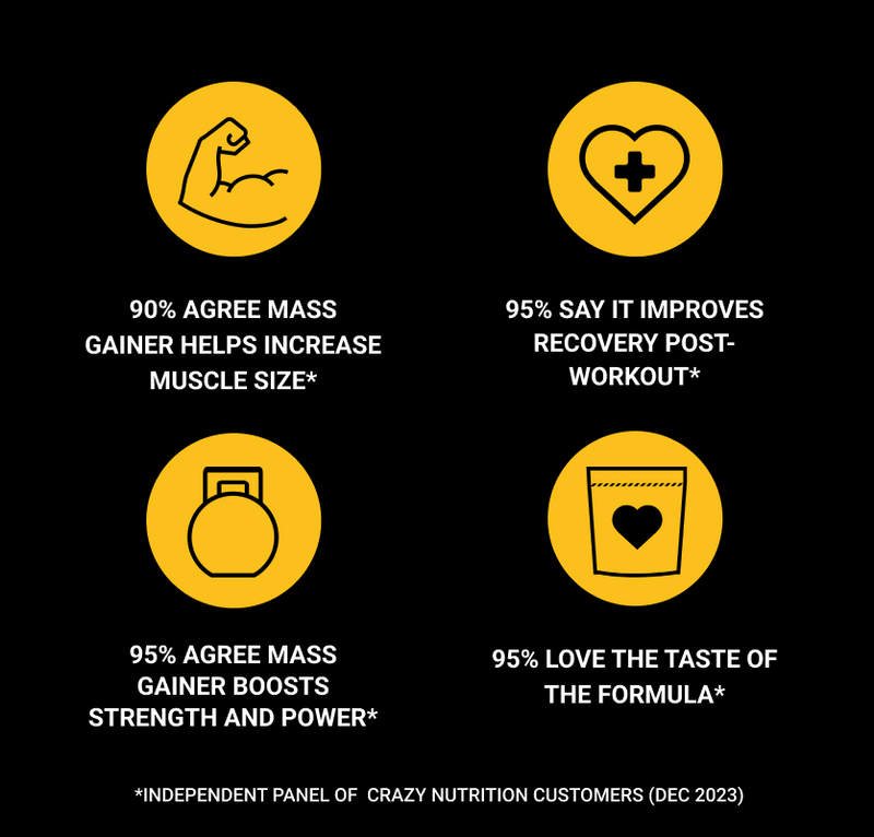 Crazy Nutrition’s MASS GAINER formula is crafted to help you increase size, pack on muscle, and improve recovery.